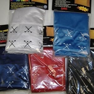 Product Description : The field hockey pillow sham has two crossed field hockey sticks with a ball in the middle screened up and down on both ends of the pillow sham. The sham is made of a dazzle cloth. The fabric is similar to the dazzle used in uniforms with is durable and looks great, even after washings. Fits standard size pillows.